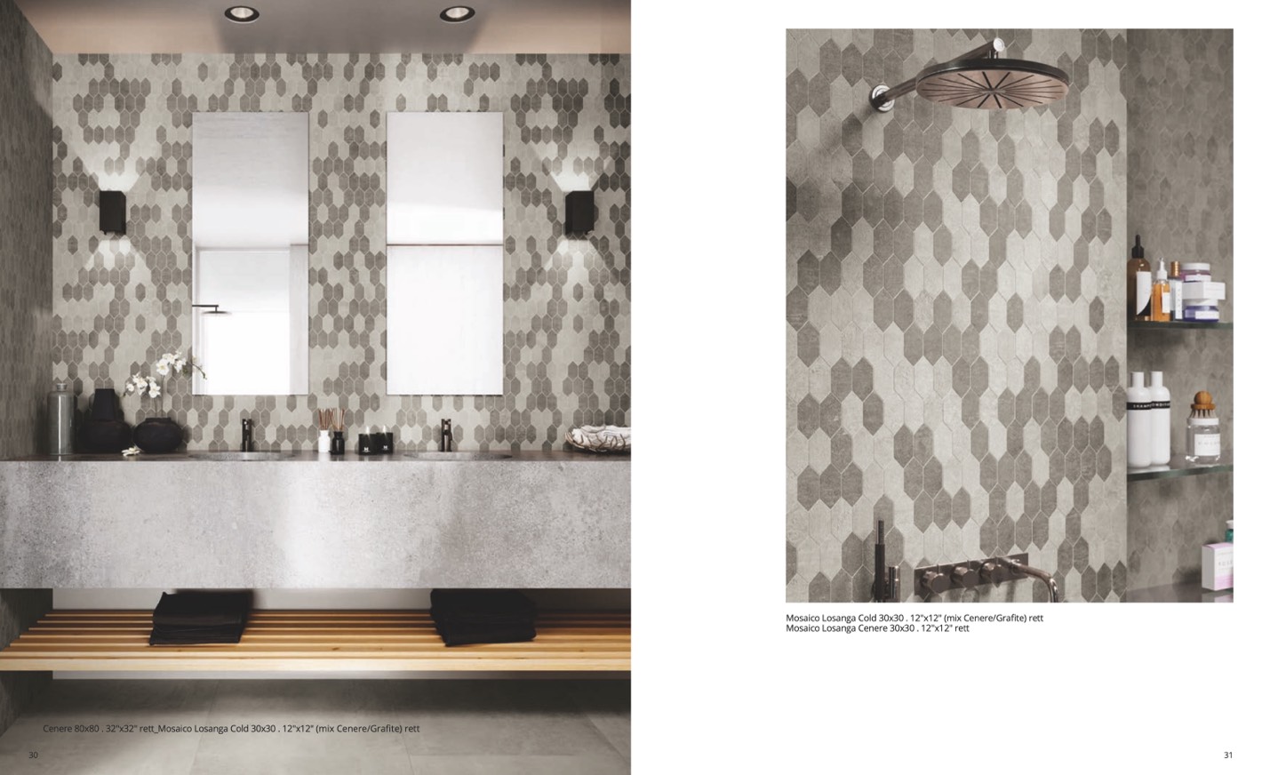 Cenere 80x80 . 32"x32" rett_Mosaico Losanga Cold 30x30 . 12"x12" (mix Cenere/Grafite) rett