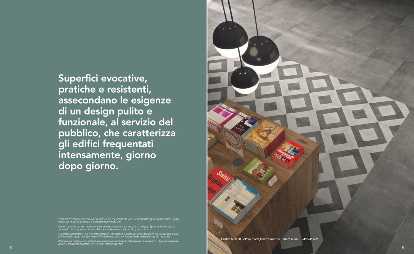 Practical, resistant and evocative surfaces serve the needs of clean, functional design for public places, giving