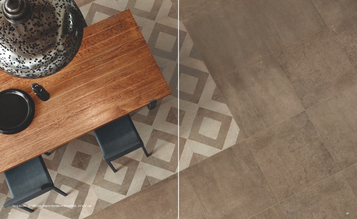 Terra 80x80 . 32"x32" rett_Inserto Rombo Ambra 60x60 . 24"x24" rett