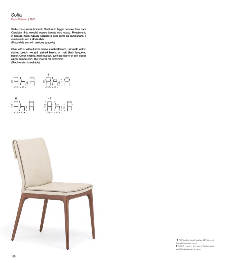 Sedia con o senza braccioli. Struttura in faggio naturale, tinto noce