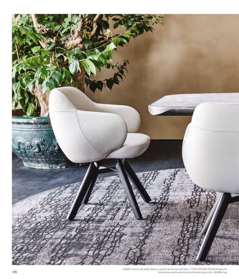BOMBÈ chairs in soft leather 948 lino, graphite and burned oak frame - TYRON KERAMIK PREMIUM table with