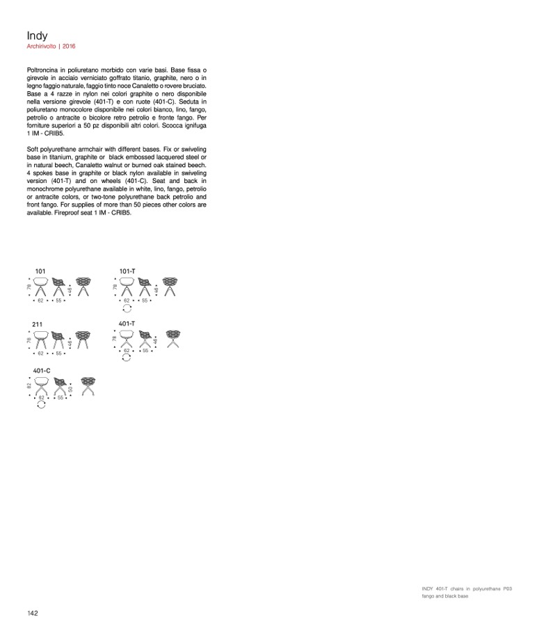 nella versione girevole (401-T) e con ruote (401-C). Seduta in