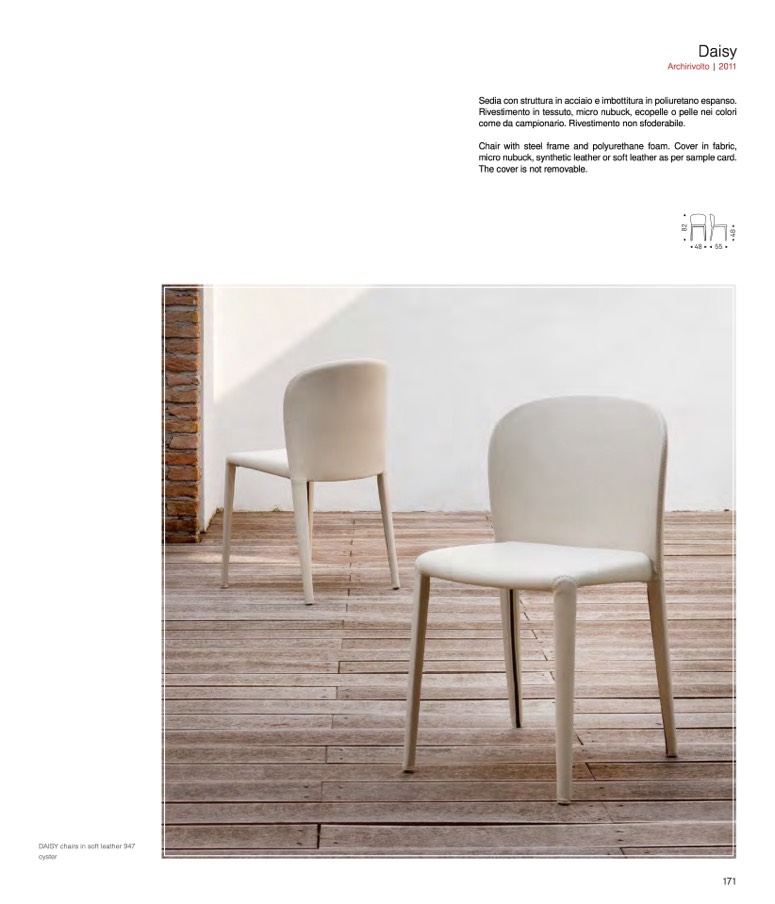 Chair with steel frame and polyurethane foam. Cover in fabric,