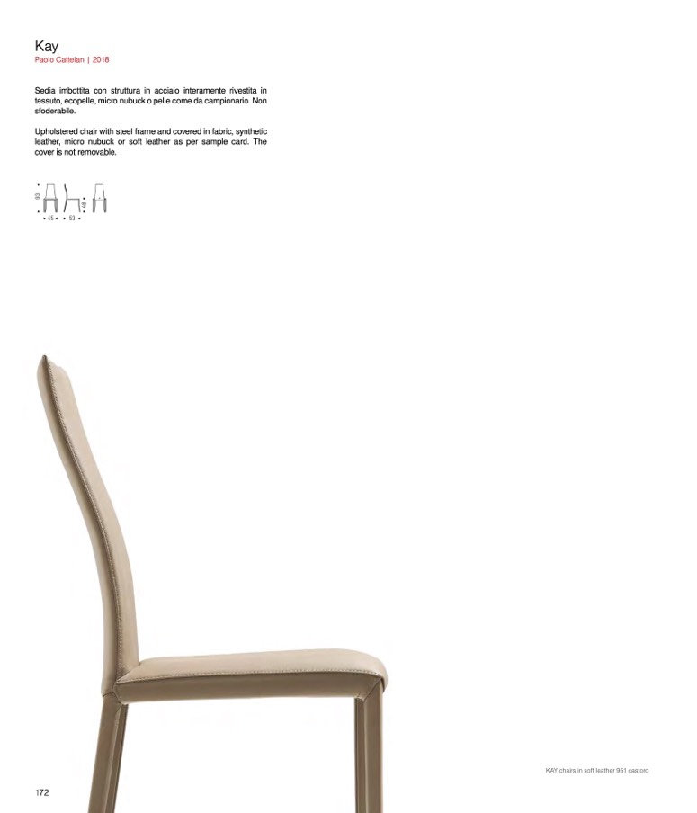 Sedia imbottita con struttura in acciaio interamente rivestita in