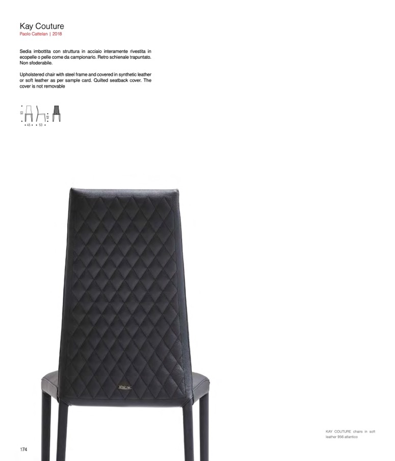 Sedia imbottita con struttura in acciaio interamente rivestita in