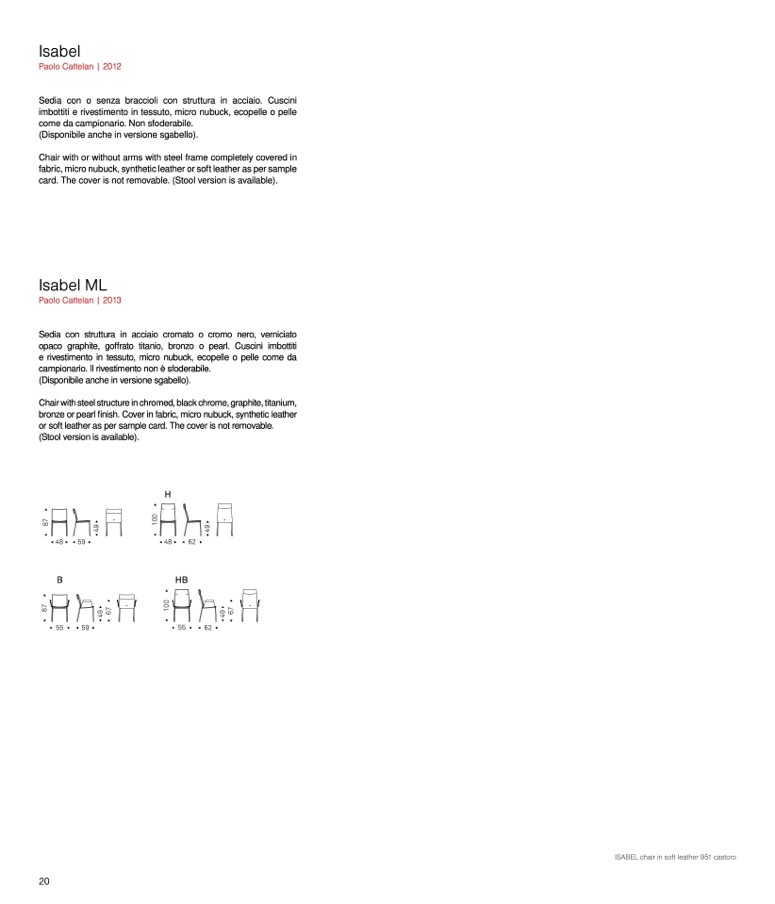 ISABEL chair in soft leather 951 castoro