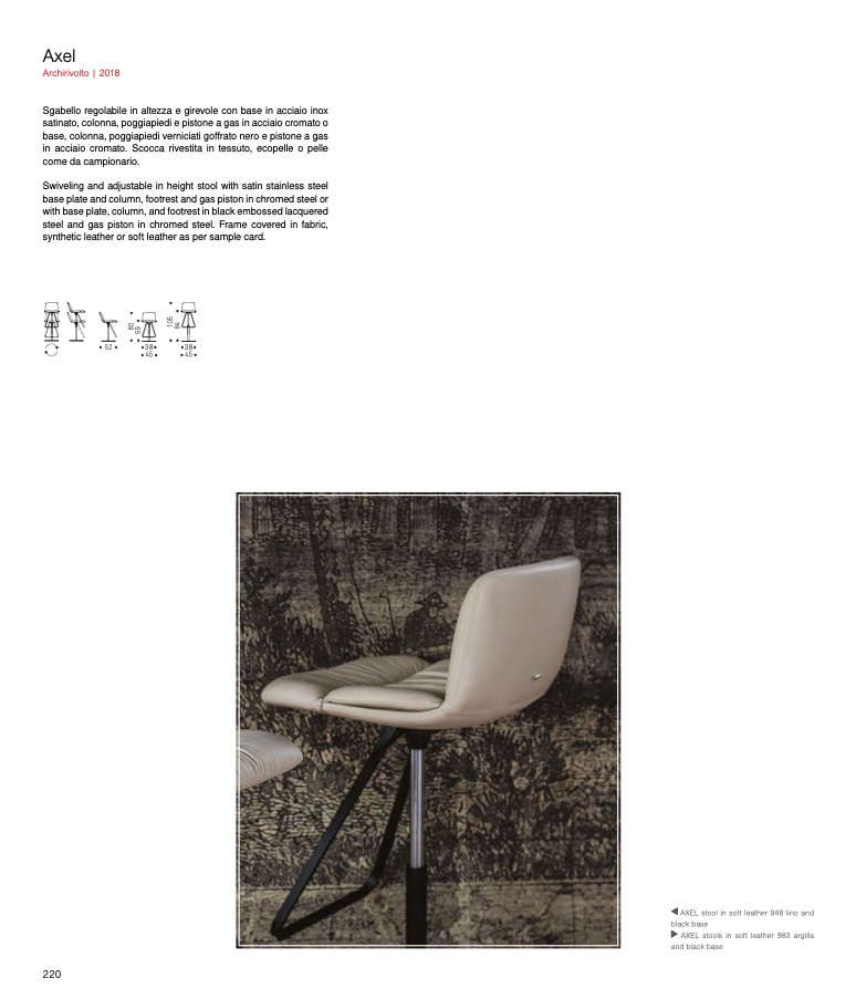 Sgabello regolabile in altezza e girevole con base in acciaio inox