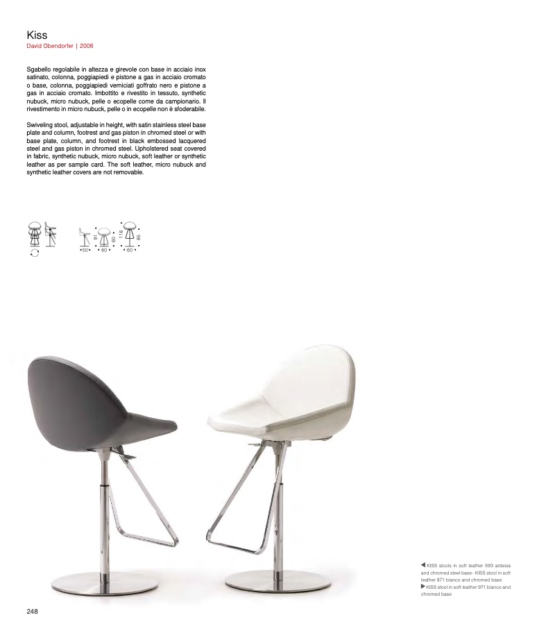 Swiveling stool, adjustable in height, with satin stainless steel base