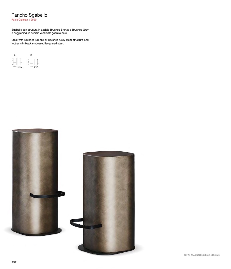 Sgabello con struttura in acciaio Brushed Bronze o Brushed Grey