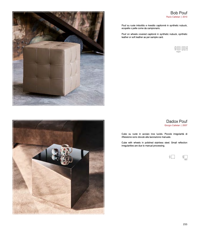 Pouf su ruote imbottito e rivestito capitonnè in synthetic nubuck,