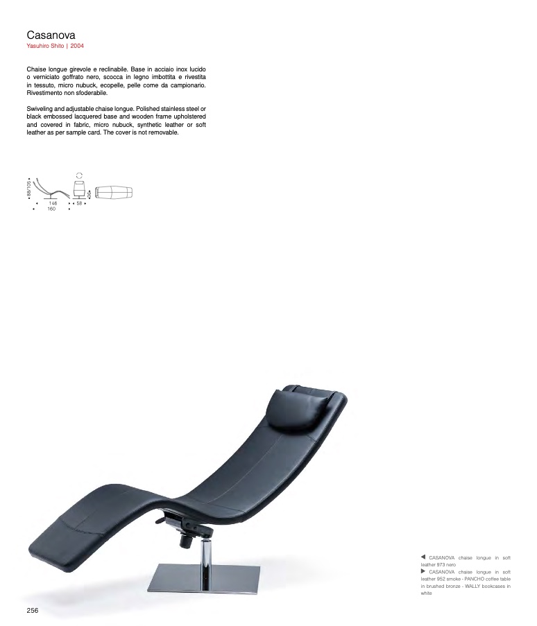 Chaise longue girevole e reclinabile. Base in acciaio inox lucido