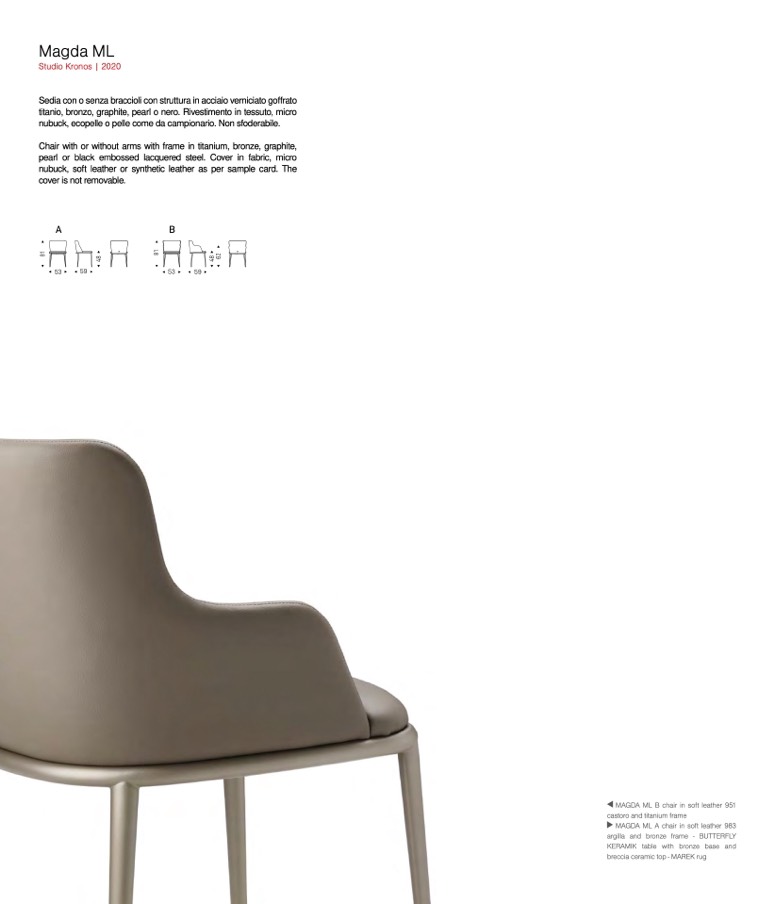 Chair with or without arms with frame in titanium, bronze, graphite,