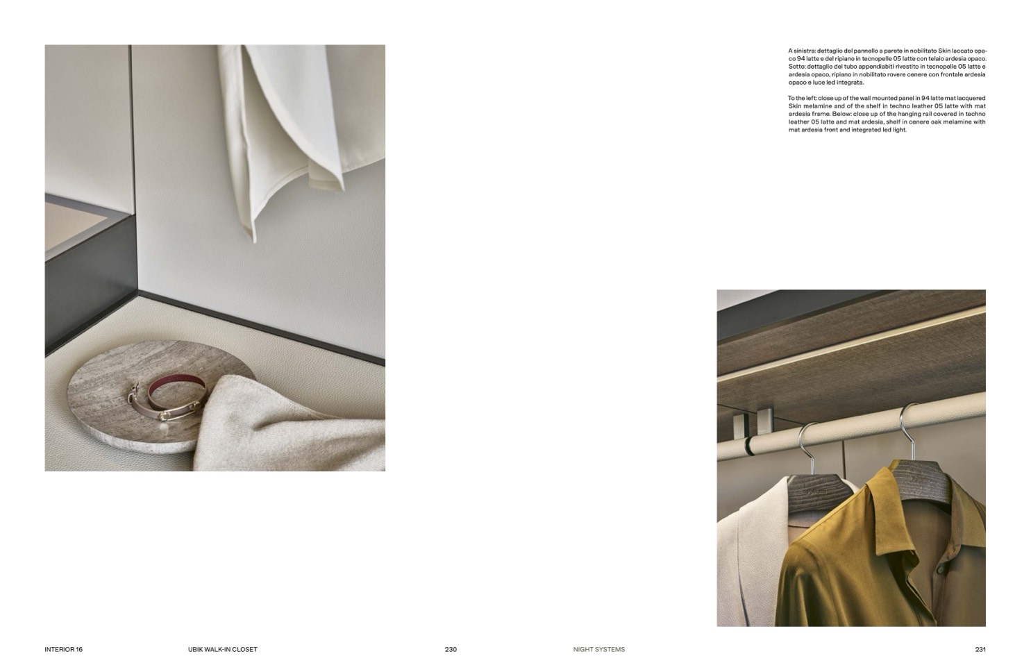 Sotto: dettaglio del tubo appendiabiti rivestito in tecnopelle 05 latte e