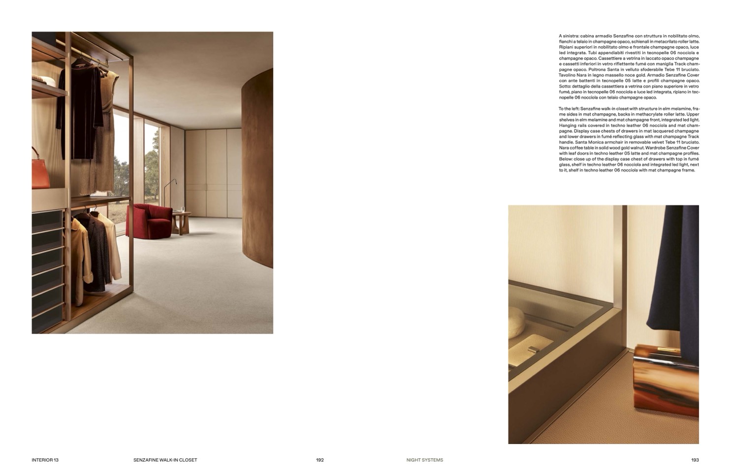 A sinistra: cabina armadio Senzafine con struttura in nobilitato olmo,