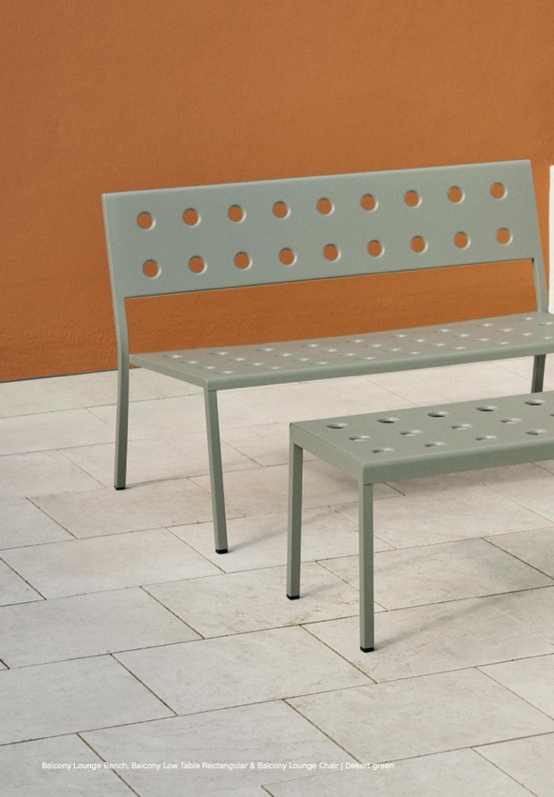 Balcony Lounge Bench, Balcony Low Table Rectangular & Balcony Lounge Chair | Desert green