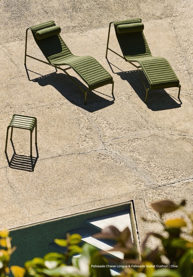 Palissade Chaise Longue & Palissade Quiltet Cushion | Olive