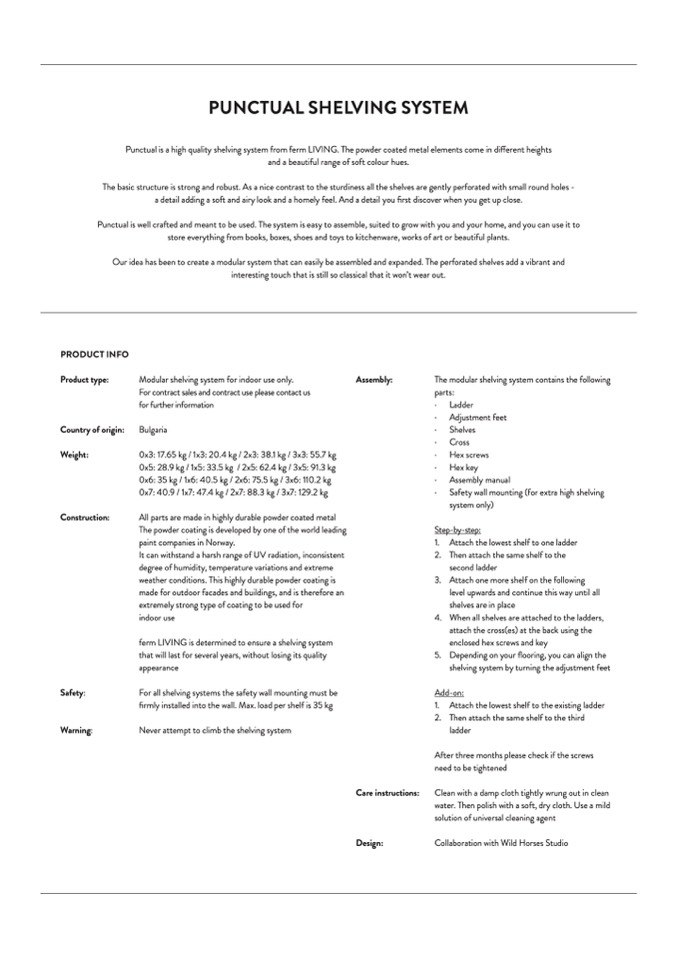 Punctual is a high quality shelving system from ferm LIVING. The powder coated metal elements come in different heights