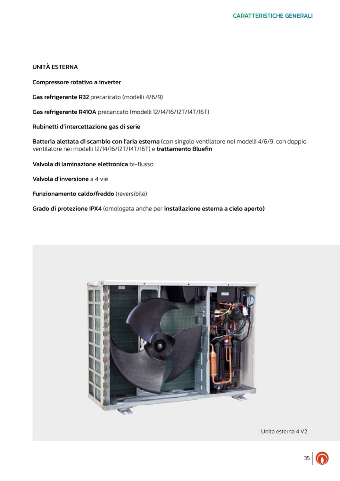 Batteria alettata di scambio con l’aria esterna (con singolo ventilatore nei modelli 4/6/9, con doppio