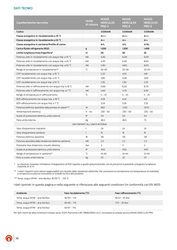 Per dati riferiti ad altre condizioni (vedasi ad es. D.G.R. Piemonte n.46-11968/2009 s.m.i.) consultare la scheda tecnica MAGIS HERCULES PRO.