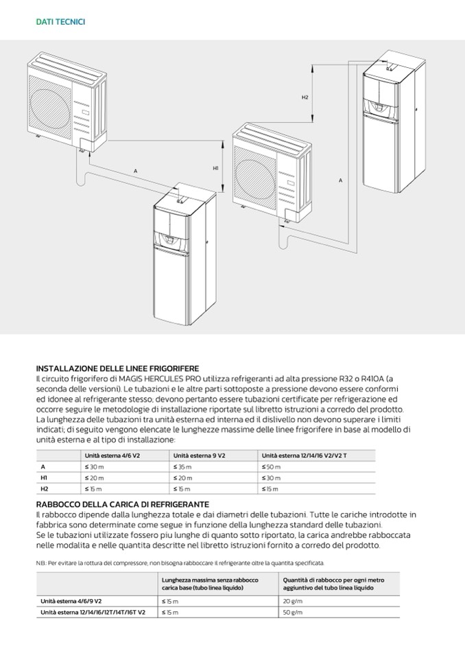 Il circuito frigorifero di MAGIS HERCULES PRO utilizza refrigeranti ad alta pressione R32 o R410A (a