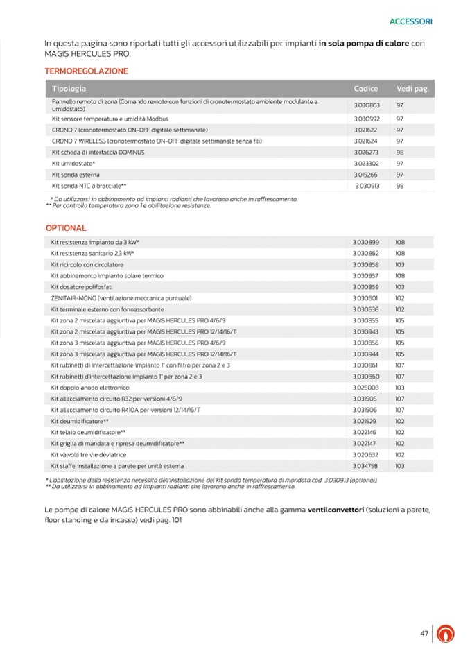 * L'abilitazione della resistenza necessita dell'installazione del kit sonda temperatura di mandata cod. 3.030913 (optional).