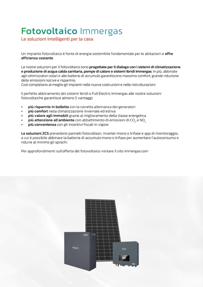 Per approfondimenti sull'offerta del fotovoltaico visitare il sito immergas.com