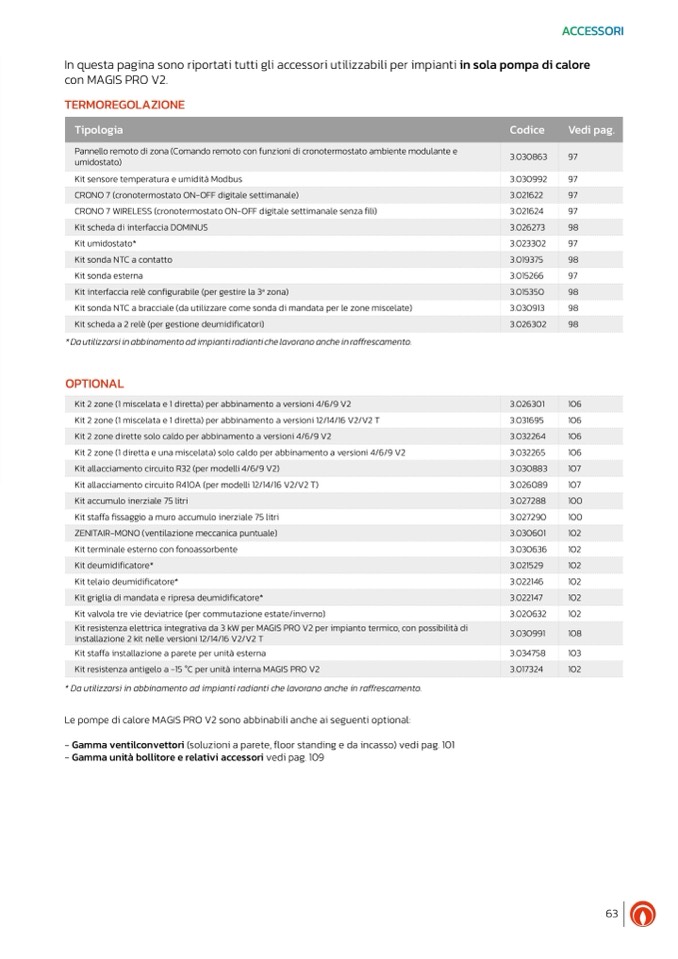 In questa pagina sono riportati tutti gli accessori utilizzabili per impianti in sola pompa di calore