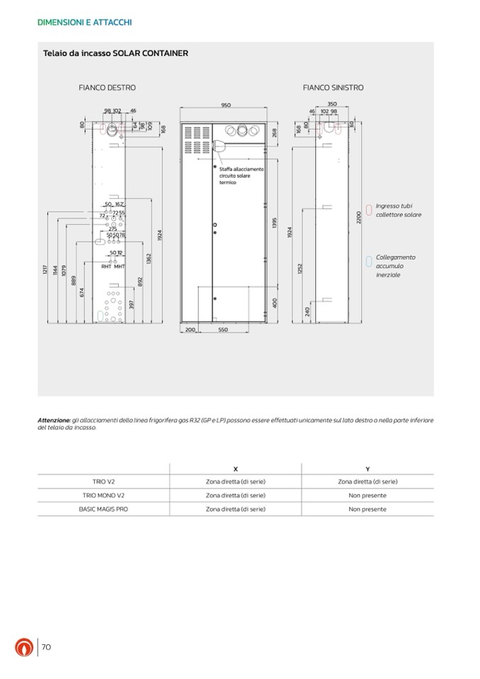 Attenzione: gli allacciamenti della linea frigorifera gas R32 (GP e LP) possono essere effettuati unicamente sul lato destro o nella parte inferiore