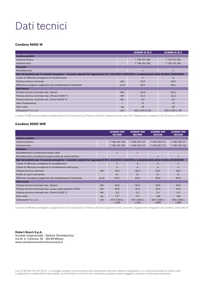 cod. 8 738 400 157 (07.2017) - Le immagini presenti nel documento sono puramente indicative. Bosch