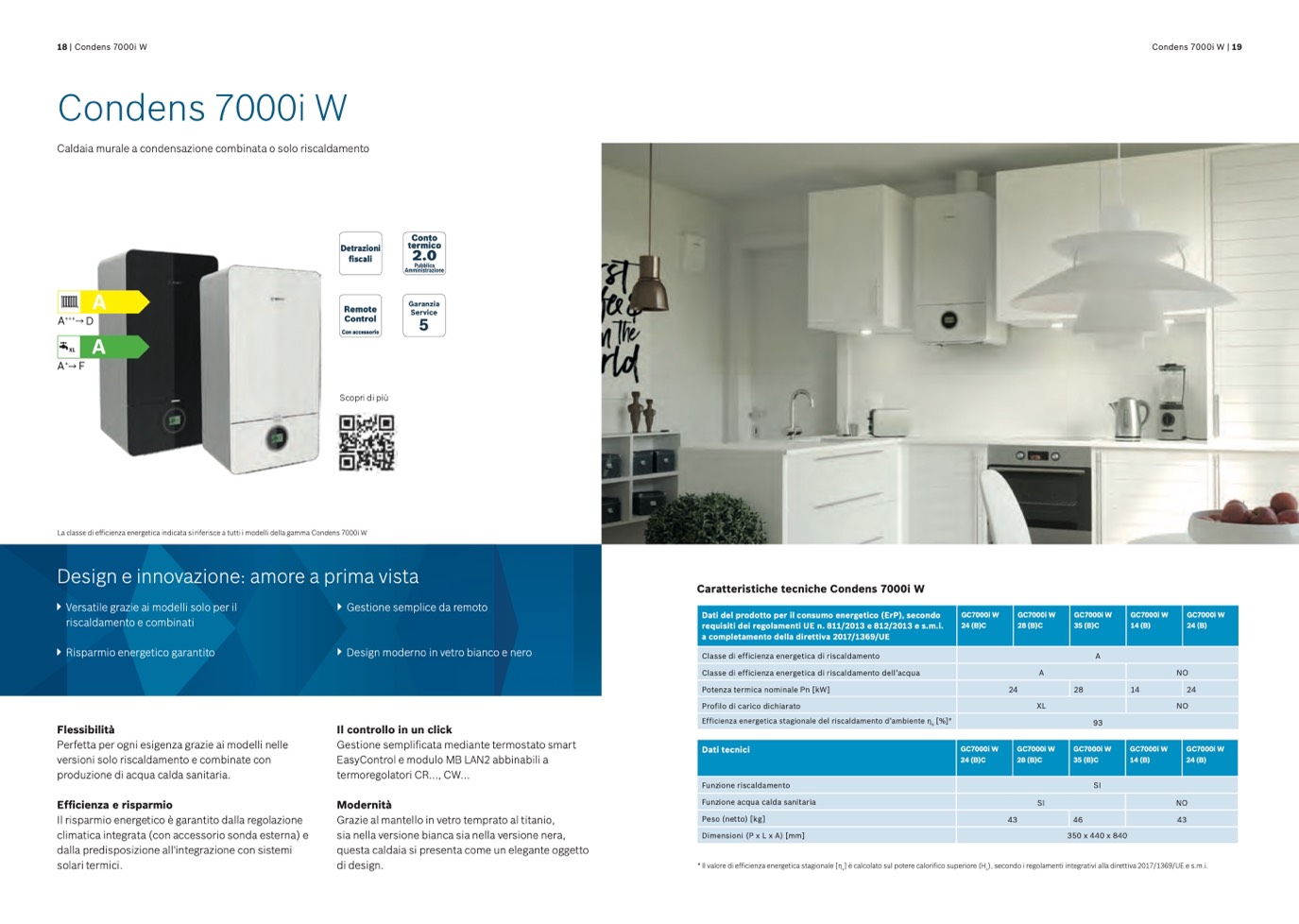 La classe di efficienza energetica indicata si riferisce a tutti i modelli della gamma Condens 7000i W