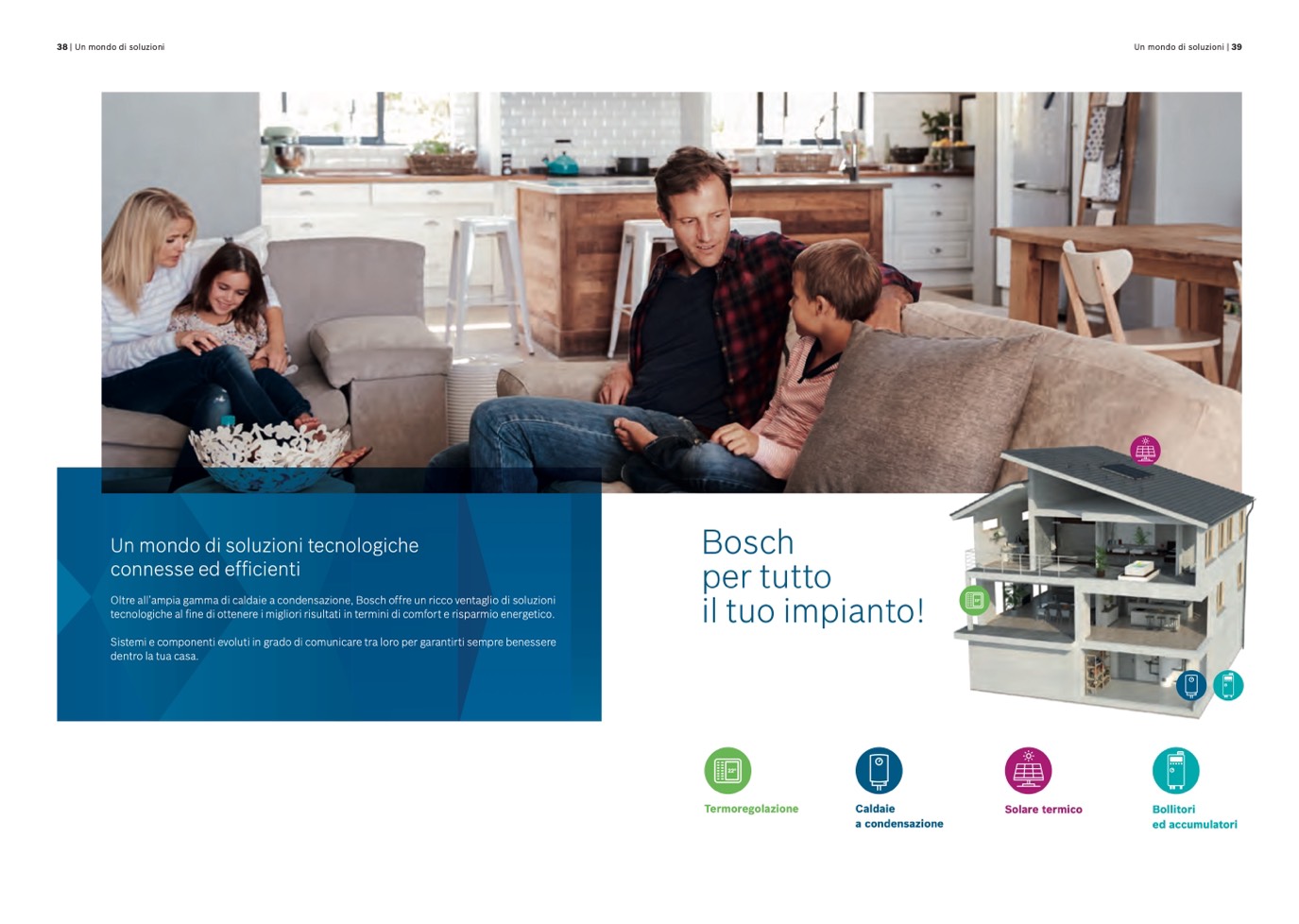Oltre all’ampia gamma di caldaie a condensazione, Bosch offre un ricco ventaglio di soluzioni