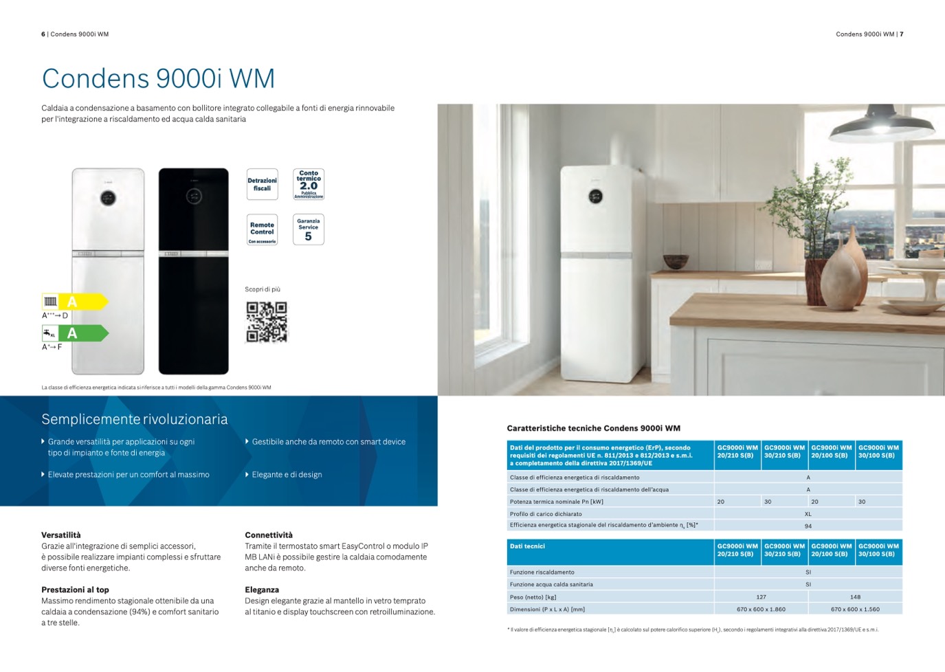 La classe di efficienza energetica indicata si riferisce a tutti i modelli della gamma Condens 9000i WM