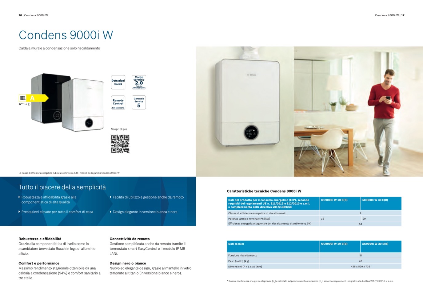 La classe di efficienza energetica indicata si riferisce a tutti i modelli della gamma Condens 9000i W