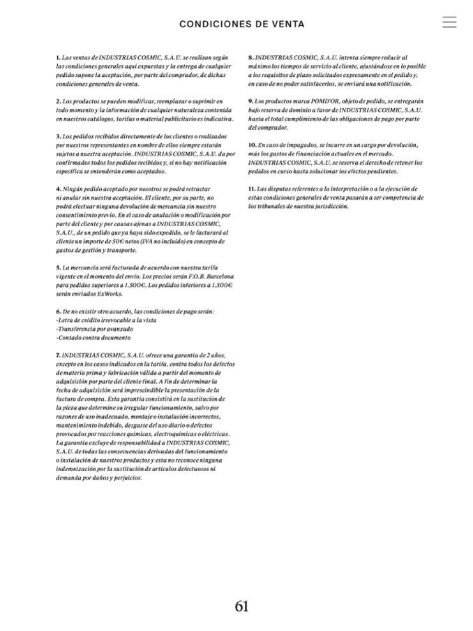 sujetos a nuestra aceptación. INDUSTRIAS COSMIC, S.A.U. da por