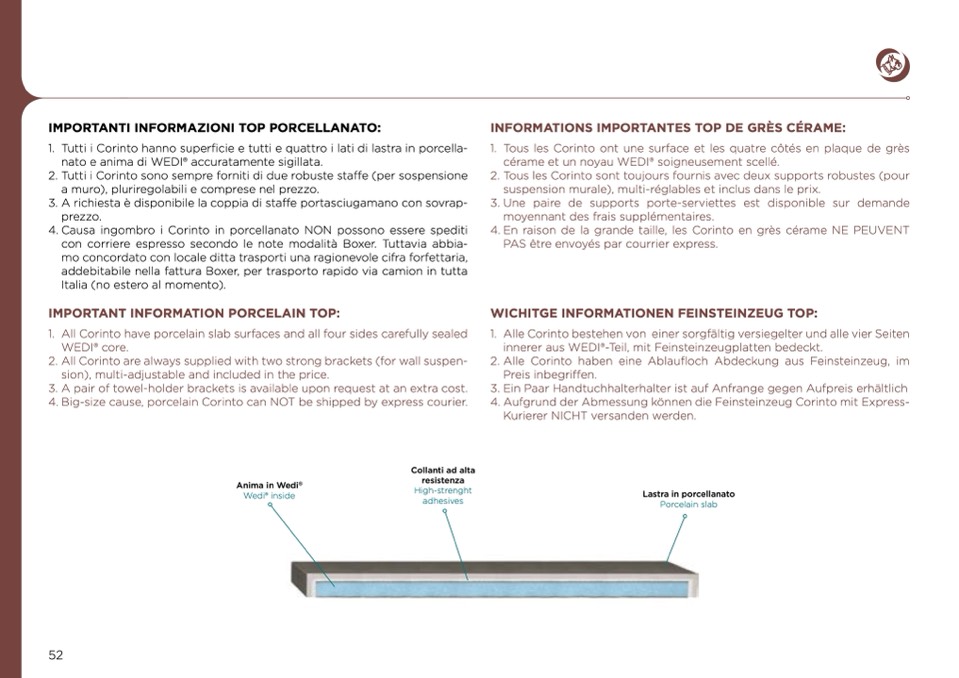 2. All Corinto are always supplied with two strong brackets (for wall suspen-
