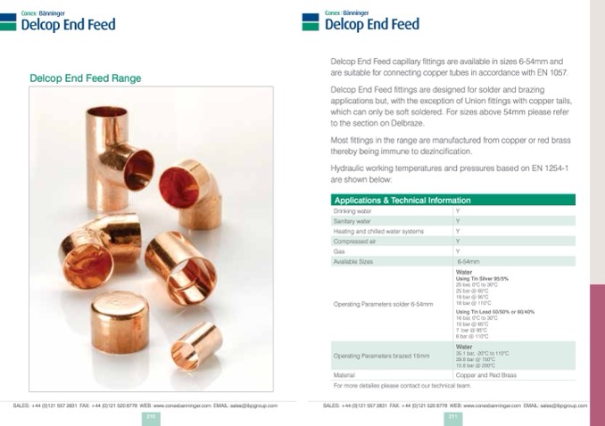 Delcop End Feed capillary fittings are available in sizes 6-54mm and