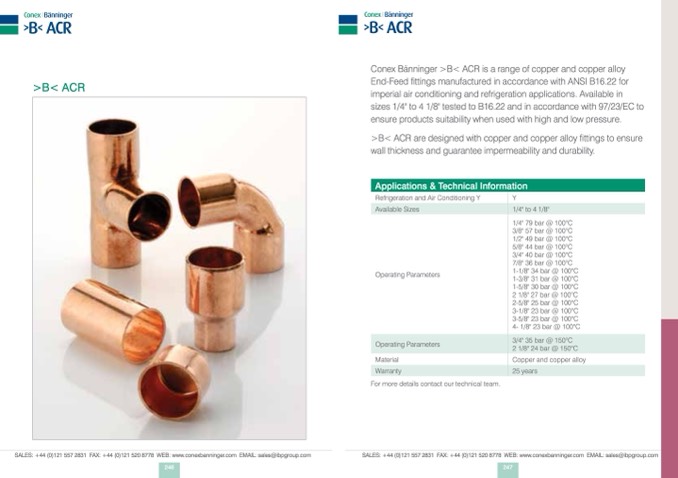 >B< ACR are designed with copper and copper alloy fittings to ensure