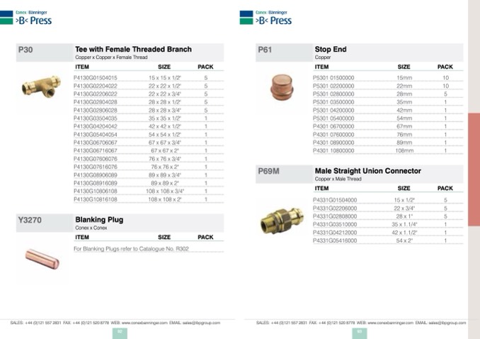For Blanking Plugs refer to Catalogue No. R302