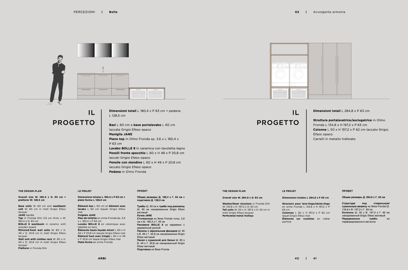 unit W. 60 cm in matt Grigio Efeso