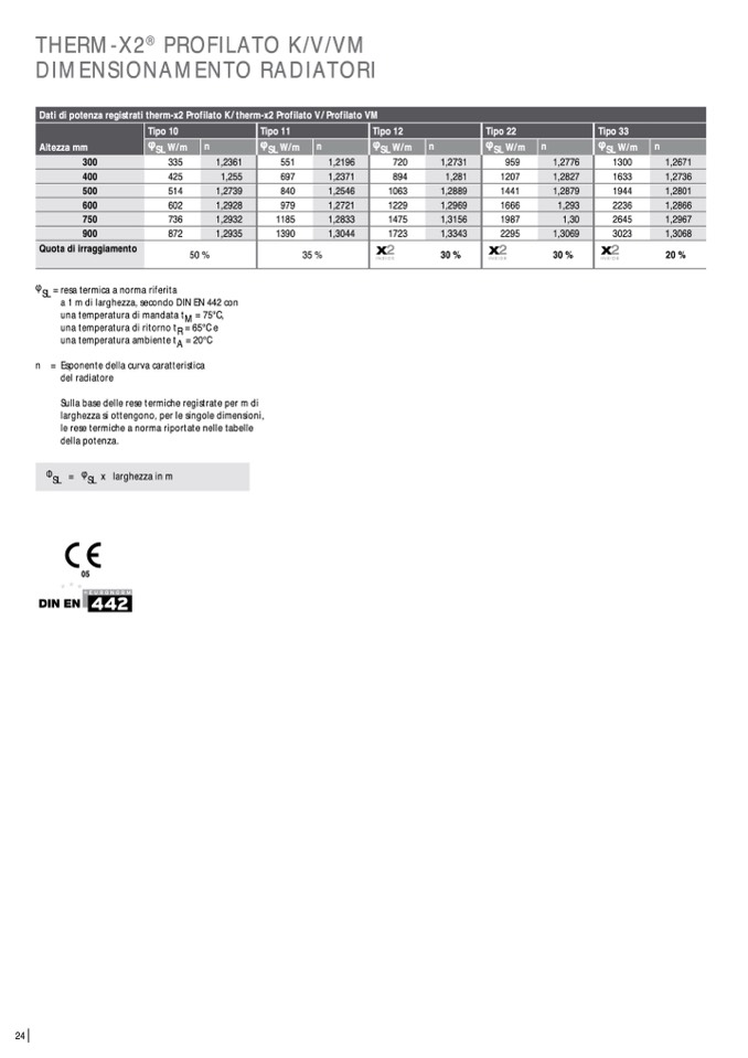 Dati di potenza registrati therm-x2 Profilato K/therm-x2 Profilato V/Profilato VM