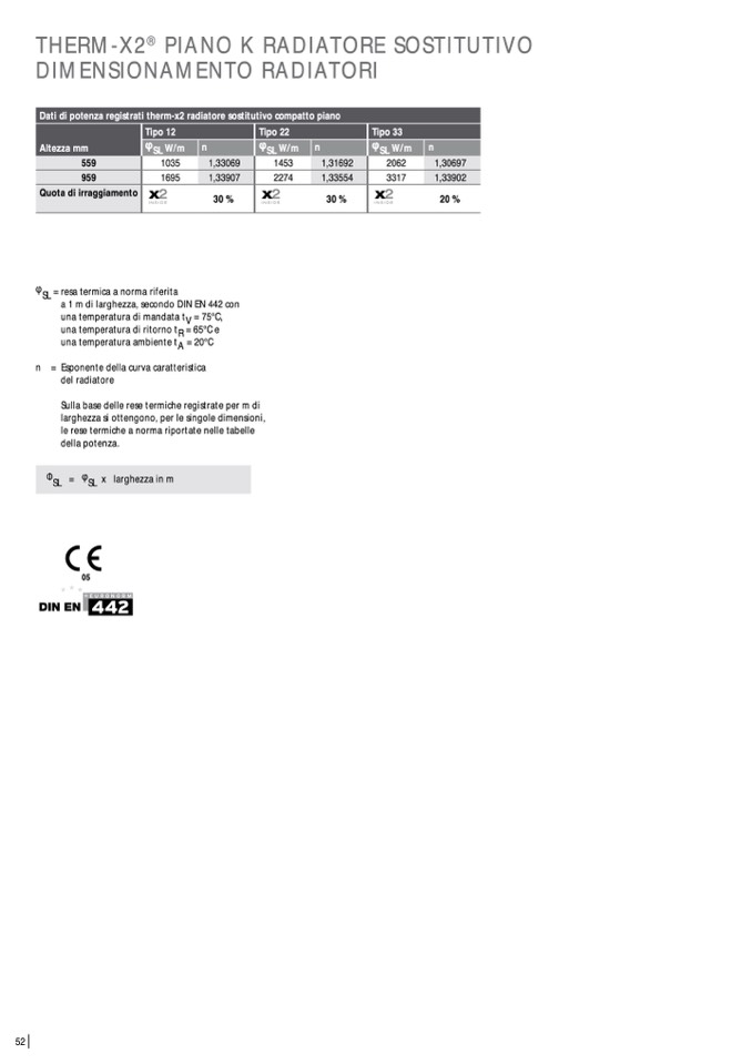 Dati di potenza registrati therm-x2 radiatore sostitutivo compatto piano