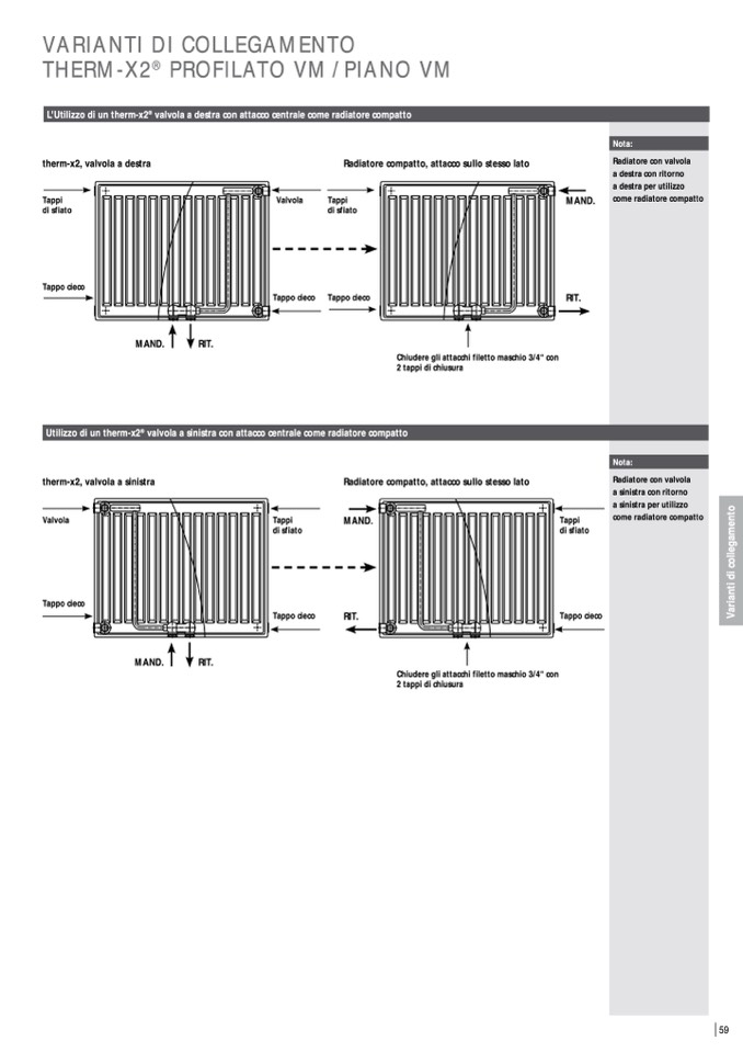 valvola a sinistra con attacco centrale come radiatore compatto