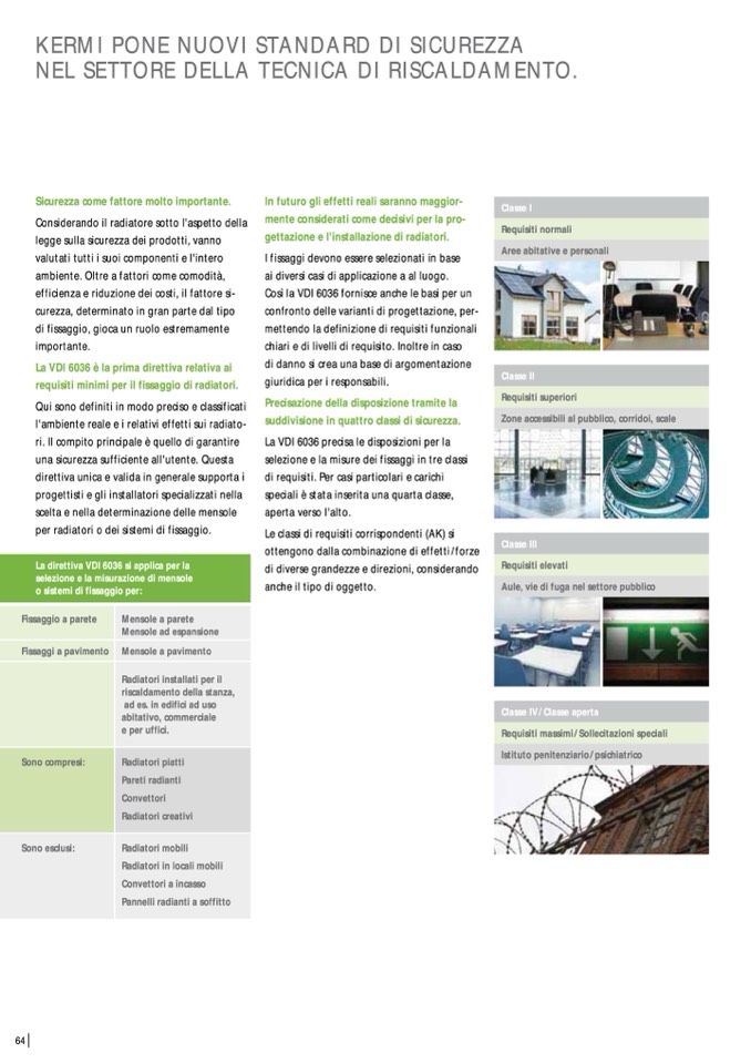 suddivisione in quattro classi di sicurezza.