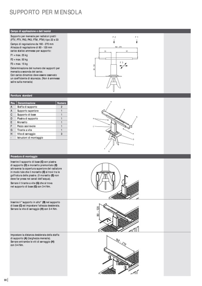 Supporto per mensola per radiatori piatti