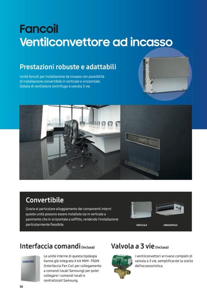 Unità fancoil per installazione da incasso con possibilità