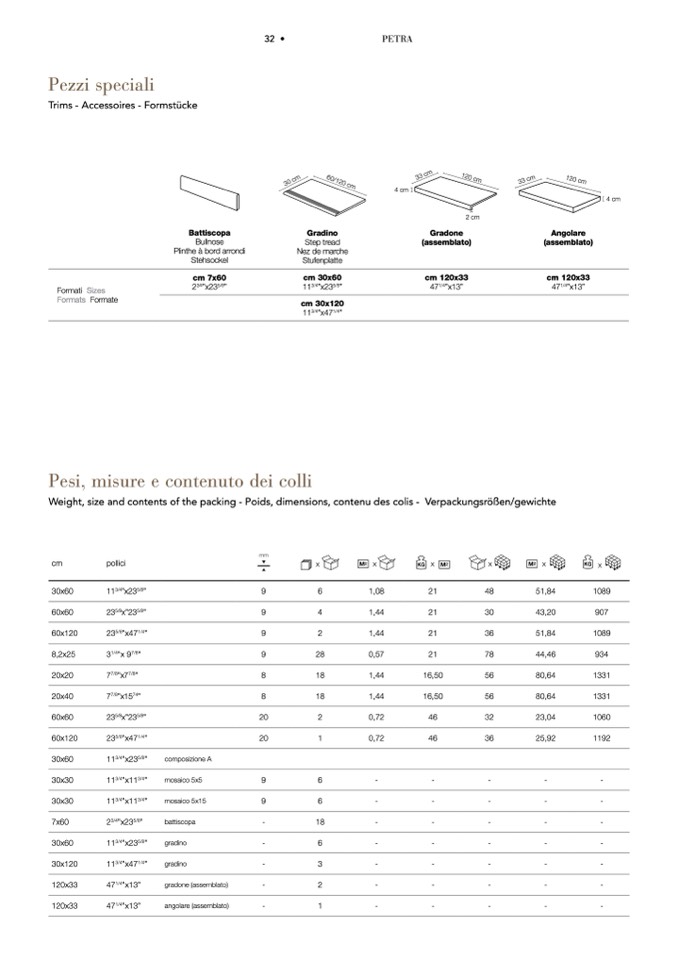 Weight, size and contents of the packing - Poids, dimensions, contenu des colis - Verpackungsrößen/gewichte