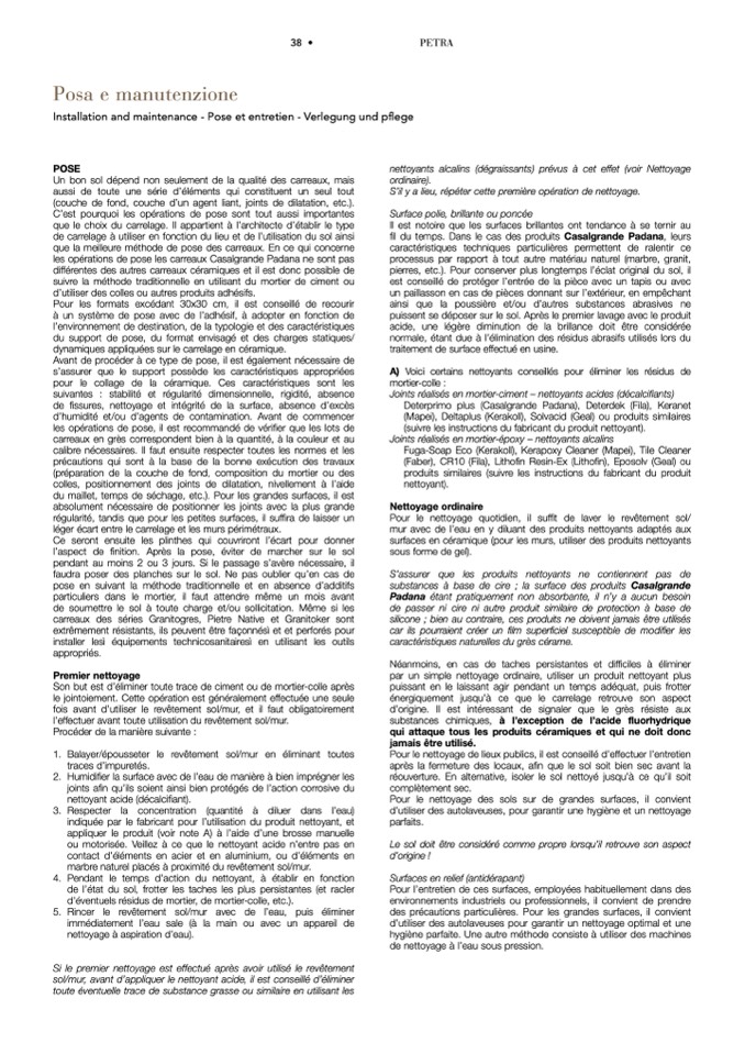Installation and maintenance - Pose et entretien - Verlegung und pflege