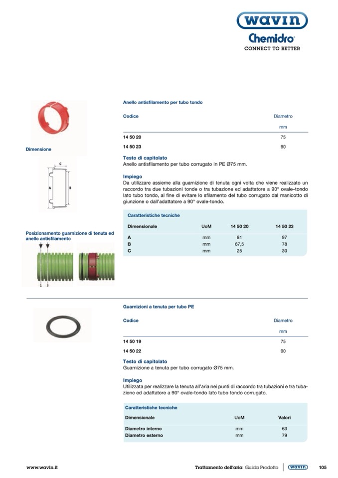 Anello antisfilamento per tubo corrugato in PE Ø75 mm.