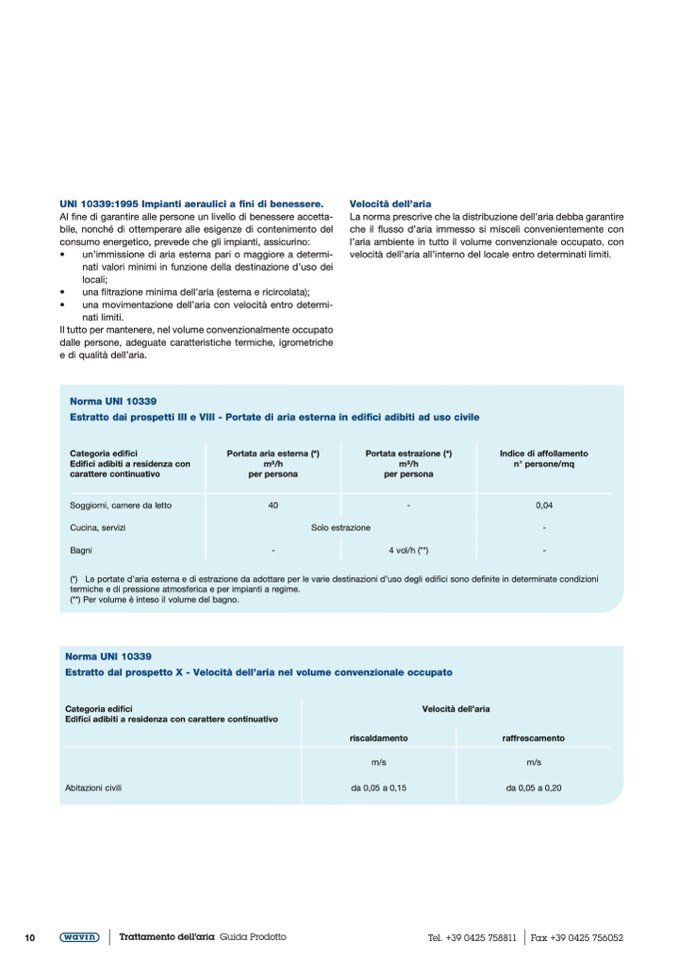 (*) Le portate d’aria esterna e di estrazione da adottare per le varie destinazioni d’uso degli edifici sono definite in determinate condizioni