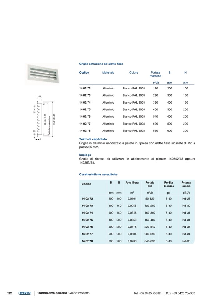 Griglia di ripresa da utilizzare in abbinamento al plenum 140242/48 oppure